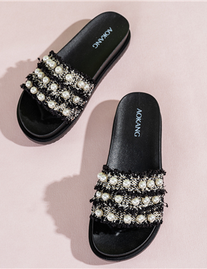 甜美女拖鞋珍珠装饰厚底增高外穿夏季凉拖女小香风配裙子舒适百搭