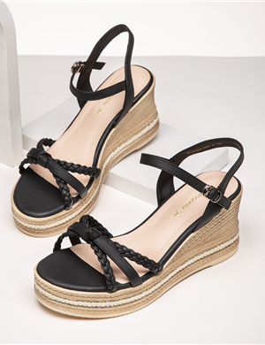 夏款女士坡跟凉鞋女时尚休闲高跟女凉鞋显高